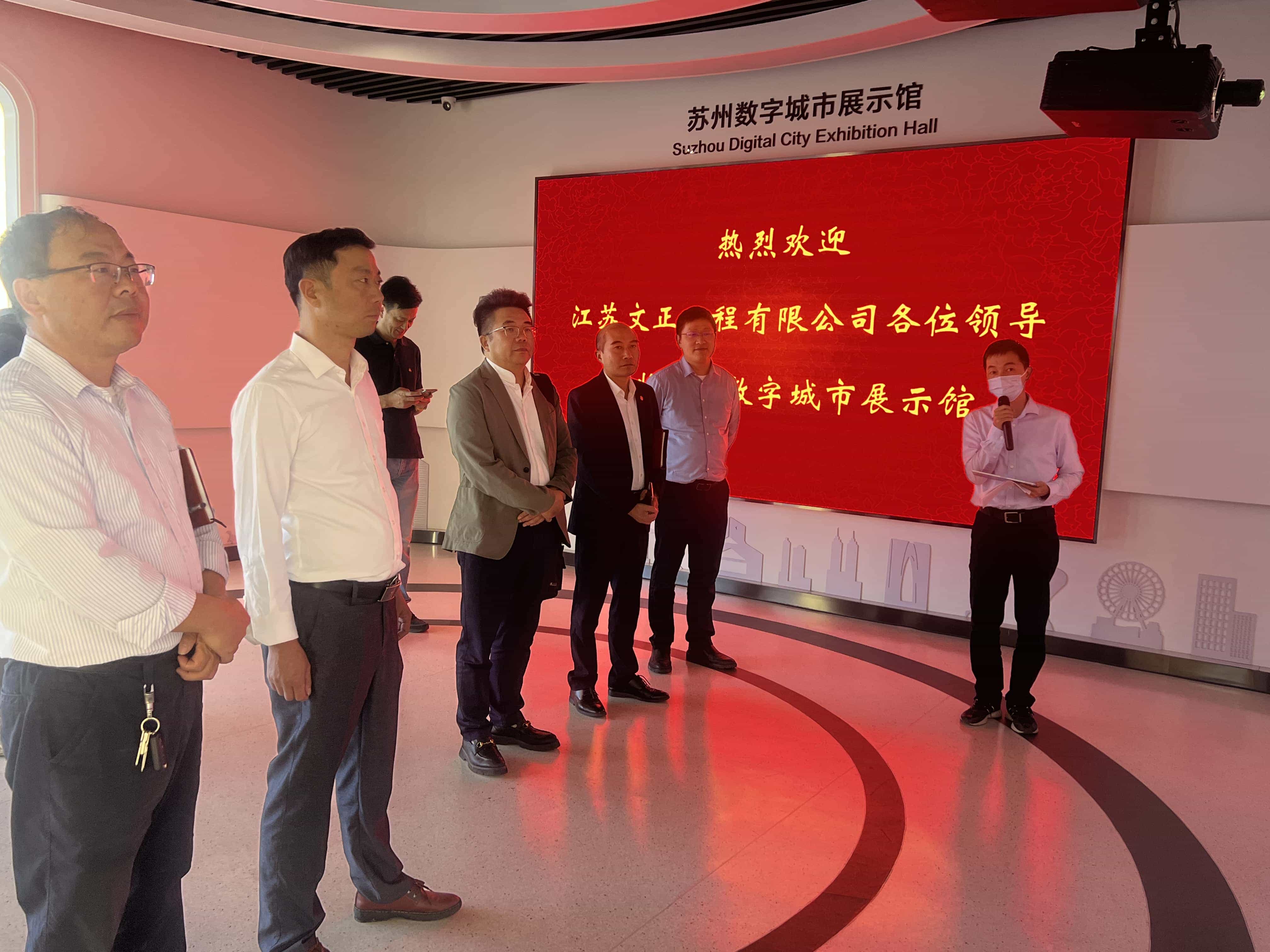 董事长谢洪正一行首先参观了苏州数字城市展示馆,近距离感受苏州电信在智慧社区、云网安全、城市物联感知、工业互联网等方面的核心布局和数字应用,并对云办公、大数据、云计算、区块链以及信创技术等进行询问了解。