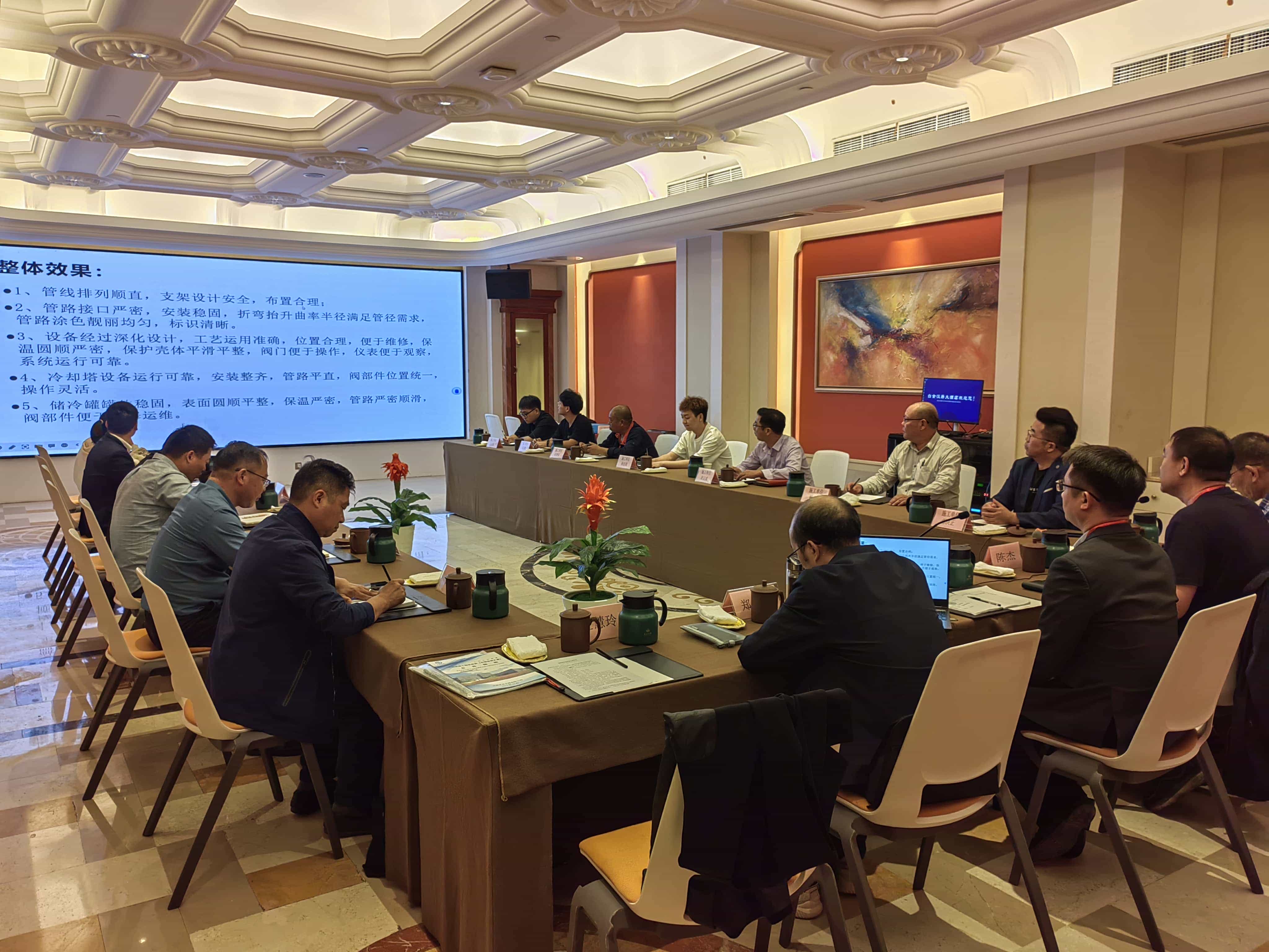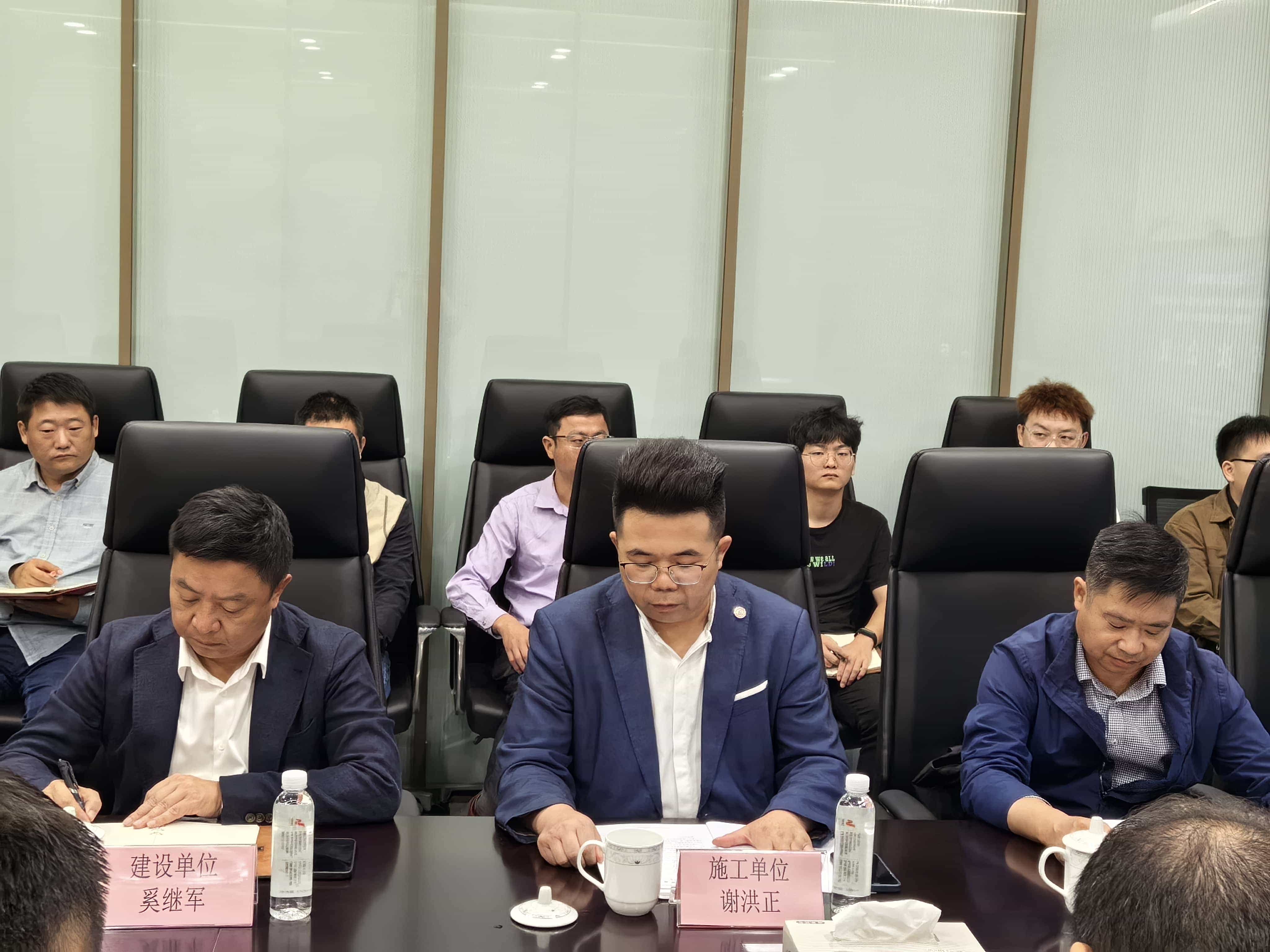首次会议参会人员有复查专家组、江苏省安装行业协会、建设单位、设计单位、监理单位相关领导。公司董事长兼总经理谢洪正、副总经理戴国庆、总经理助理蒋成伟、项目经理杨大力、陈保平等相关负责人共同参加。