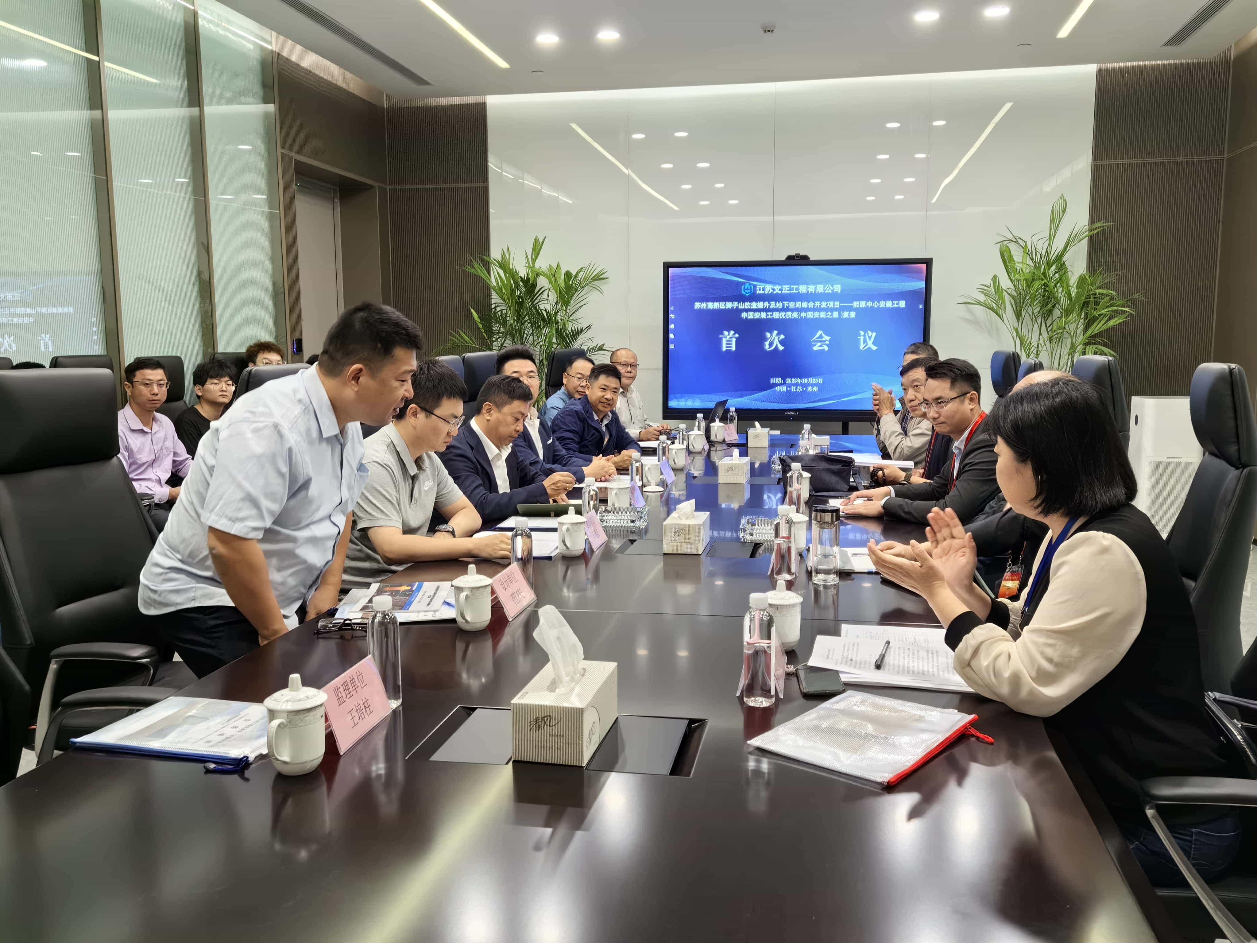 首次会议上,董事长谢洪正代表公司对专家组的莅临表示诚挚欢迎,并表示苏州高新区狮子山改造提升及地下空间综合开发项目—能源中心安装工程自工程开工建设以来,各单位紧紧围绕“中国安装之星”目标开展工作,组建了由建设、监理、设计、施工共同参与的强有力的创优班子,狠抓质量控制,坚持科技创新,提高工程品质。公司将全力配合复查各项工作,虚心听取各位专家、领导的意见和建议,按照专家们的指导意见从自身认真查找原因,进一步补充完善,进一步改进提高。