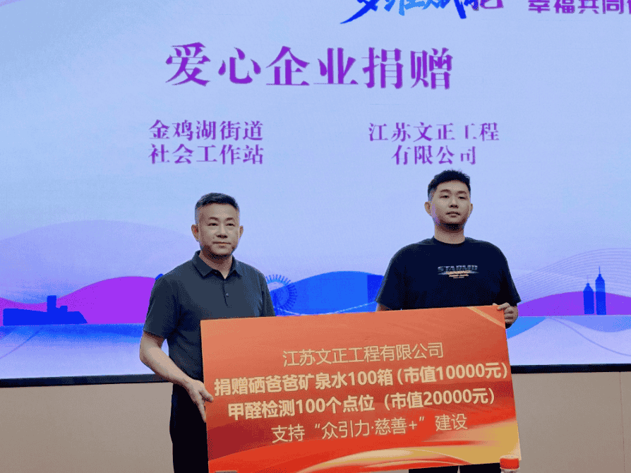我司积极响应街道号召,现场捐赠100箱硒爸爸矿泉水(市值1万元)及100个甲醛检测点位服务(市值2万元),用于支持社区健康环境建设与居民生活品质提升。这些物资将惠及辖区家庭,尤其是新装修住户及有特殊需求的群体,助力打造安全、健康的居住环境。