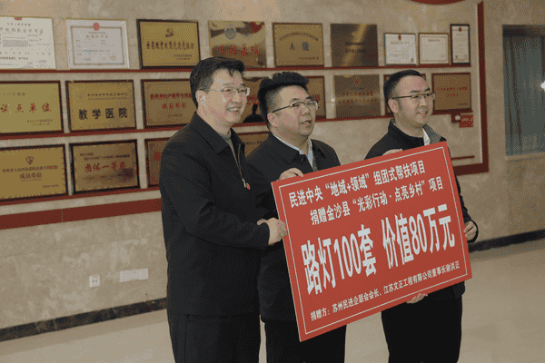 民进江苏经联会常务理事、苏州民进企联会会长、华体会集团董事长谢洪正向金沙县捐赠100套高杆太阳能路灯,总价值80余万元。这批路灯将安装在村寨道路沿线,为当地村民、学生照亮夜间回家的山路,助力乡村基础设施建设。